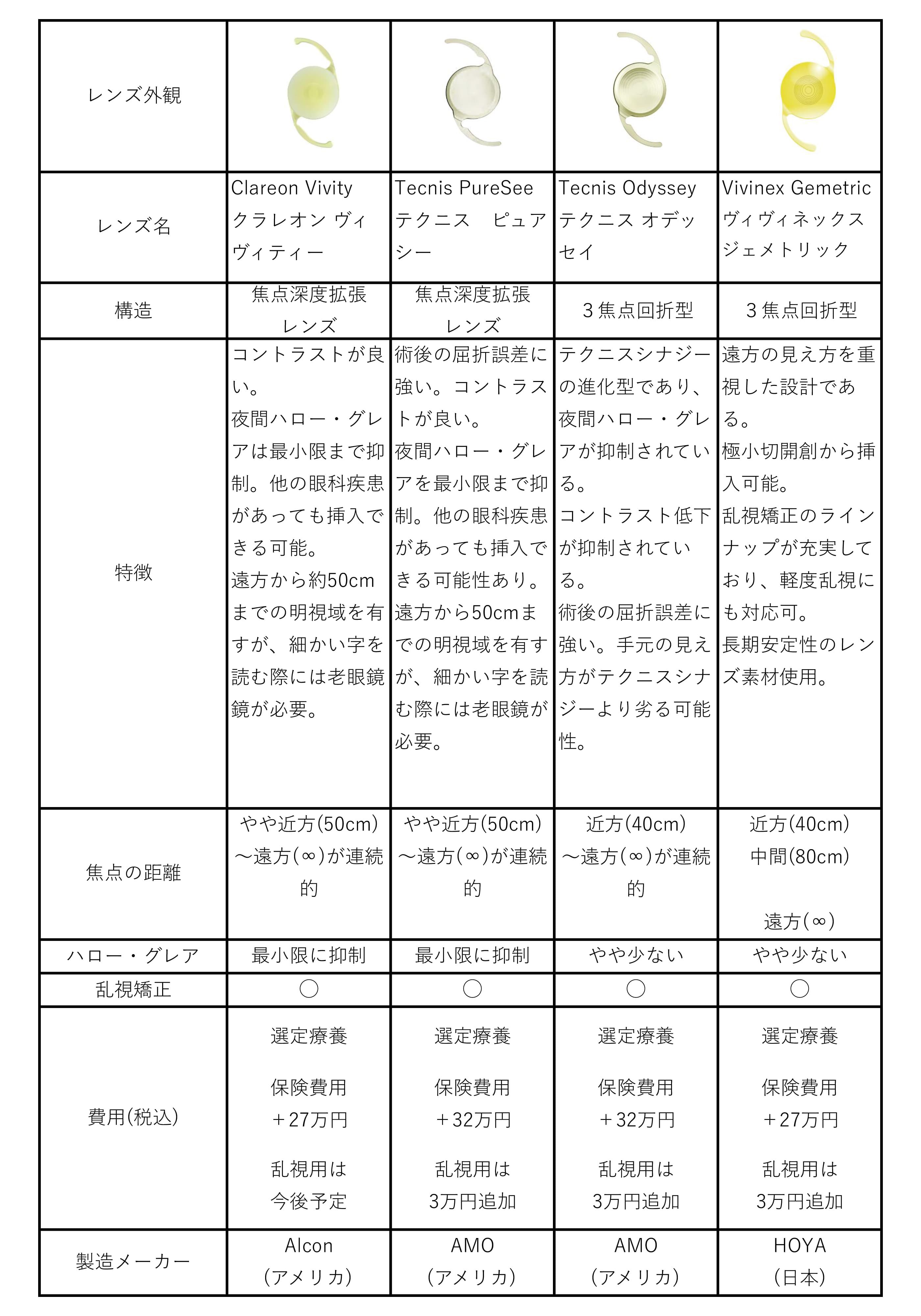③選定療養あるいは自由診療で扱う多焦点レンズ